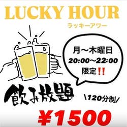 LUCKY HOUR☆月〜木 20時〜22時限定!